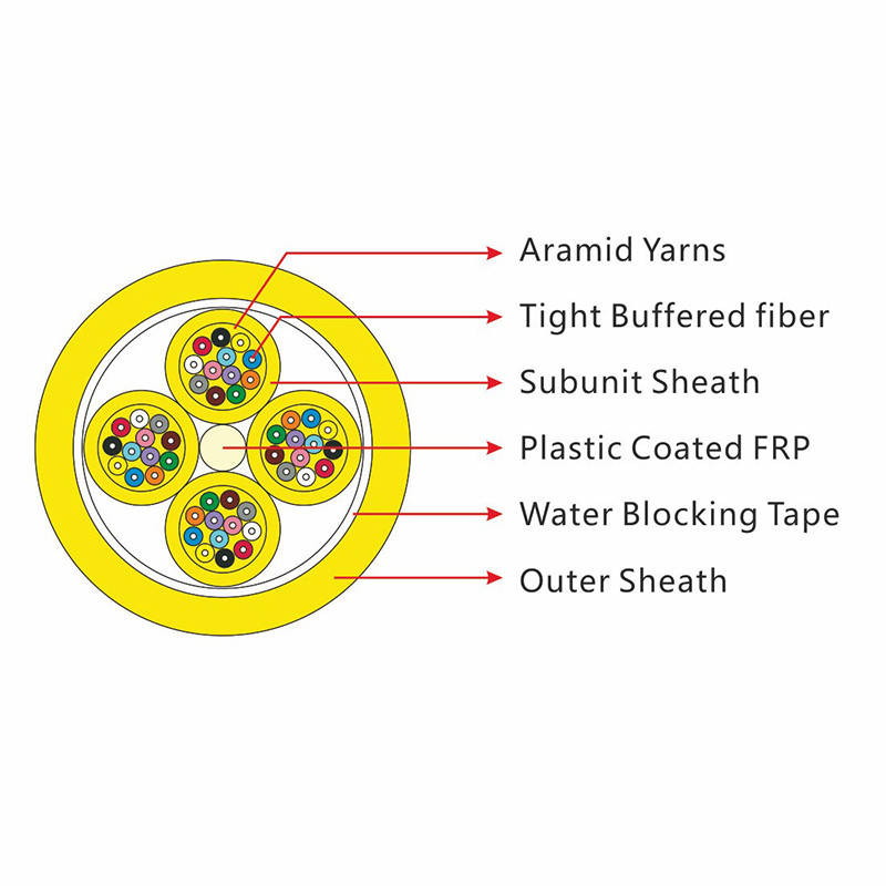 1.1 Ogni sottocavo contiene filati di aramide, buone prestazioni di piegatura, senza tubi sciolti, facili da pulire, facile costruzione e collegamento.