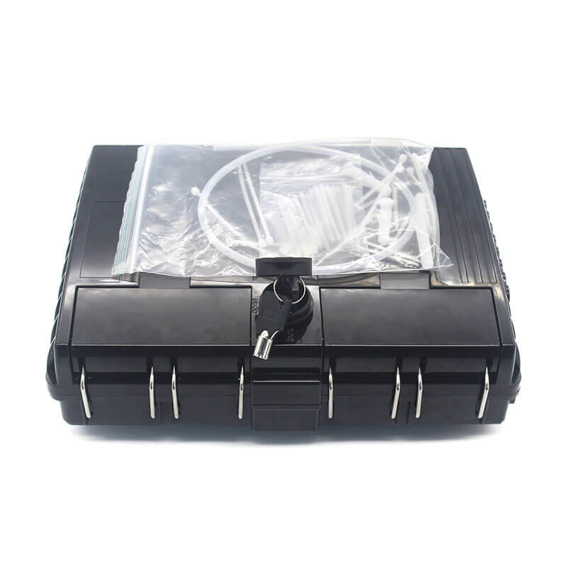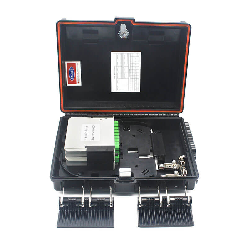 Questa scatola di distribuzione in fibra ottica termina fino a 2 cavi in fibra ottica, offre spazi per splitter e fino a 16 fusioni, alloca 16 adattatori SC e funziona in ambienti esterni.Si tratta di un fornitore di soluzioni perfette e convenienti per le reti FTTx.