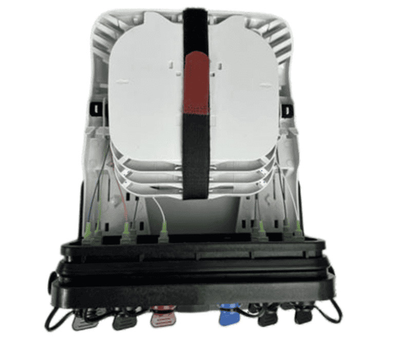 1.3 funzionalità integrata: fissaggio dei cavi di alimentazione/abbassamento, splicing delle fibre, fissazione, stoccaggio e distribuzione in un unico dispositivo.